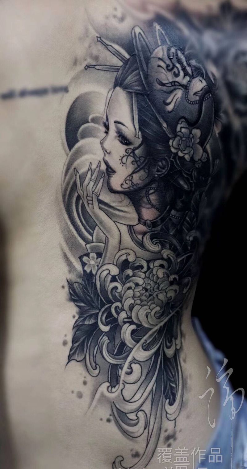 黑灰满背纹身图案