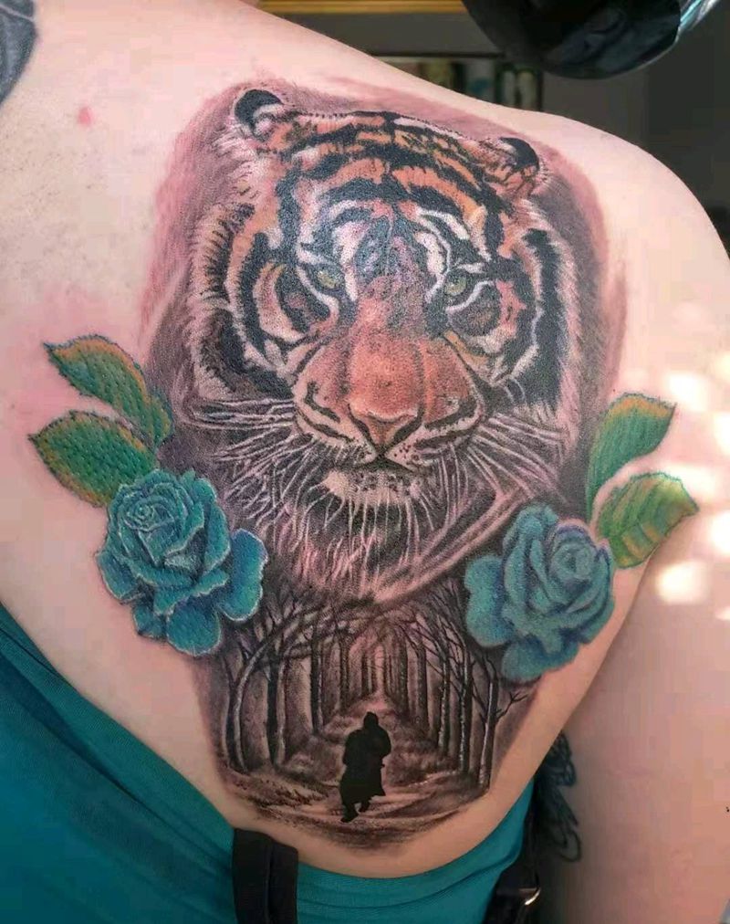 虎头纹身纹身图片_肩部背部欧美写实纹身图案