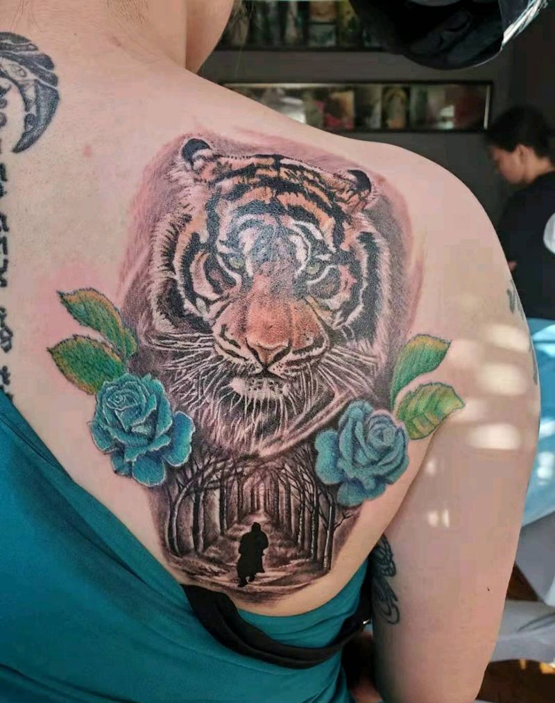 虎头纹身纹身图片_肩部背部欧美写实纹身图案