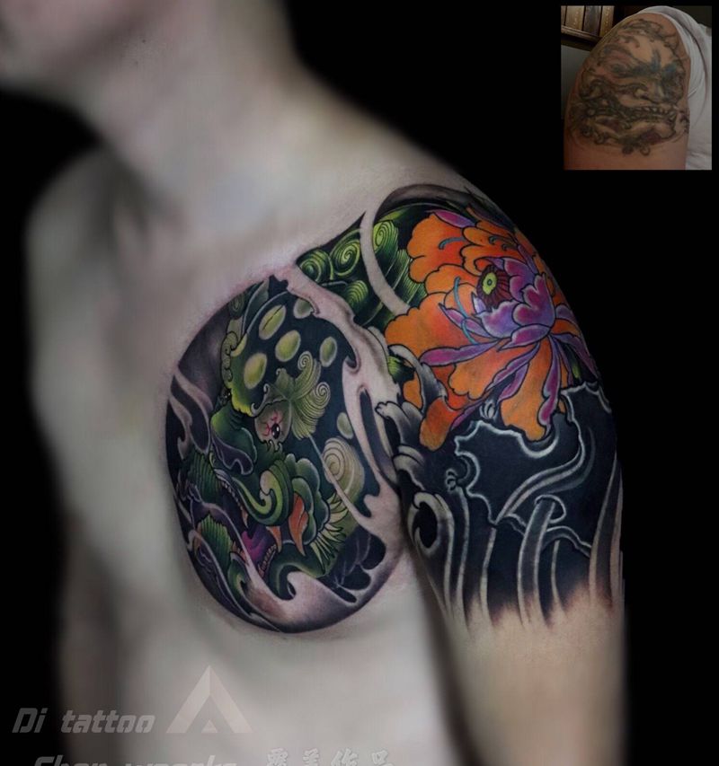 一组15张莲花纹身手
