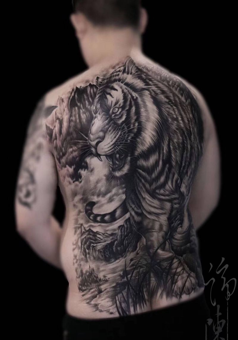 老虎纹身图片_背部欧美写实满背老虎老虎写实老虎纹身图案
