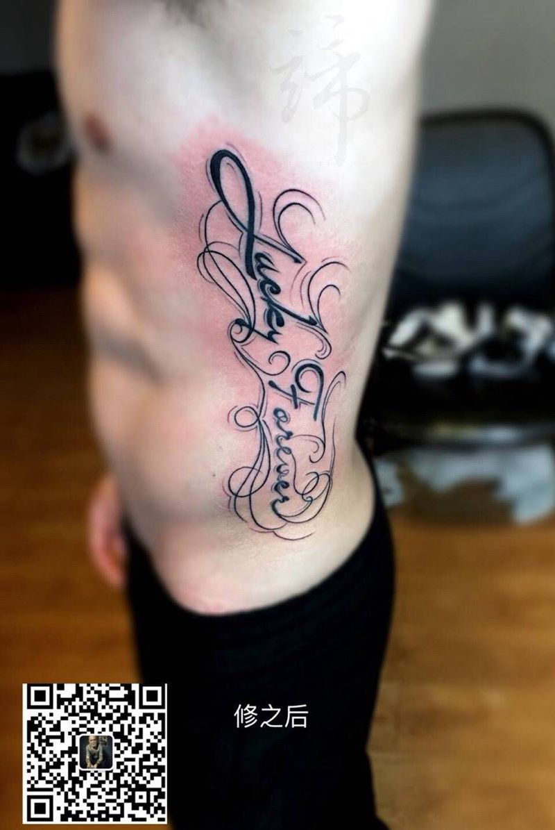 • T关于私处得爱!纹身图片_成品腹部清新字符图腾纹身图案