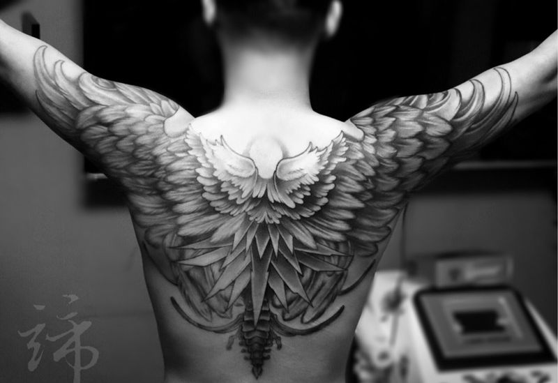 黑灰满背纹身图案