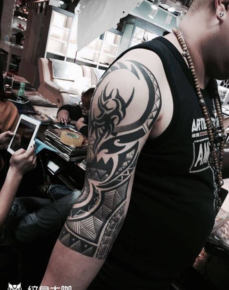 • 纹身吧推荐的披肩图腾半胛纹身图案作品展示