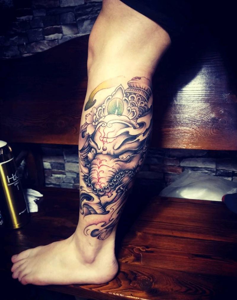 当前位置: 首页 >内蒙古乌兰察布市纹身店-匠一刺青纹身图案>象神纹身图片_腿部新传统纹身图案