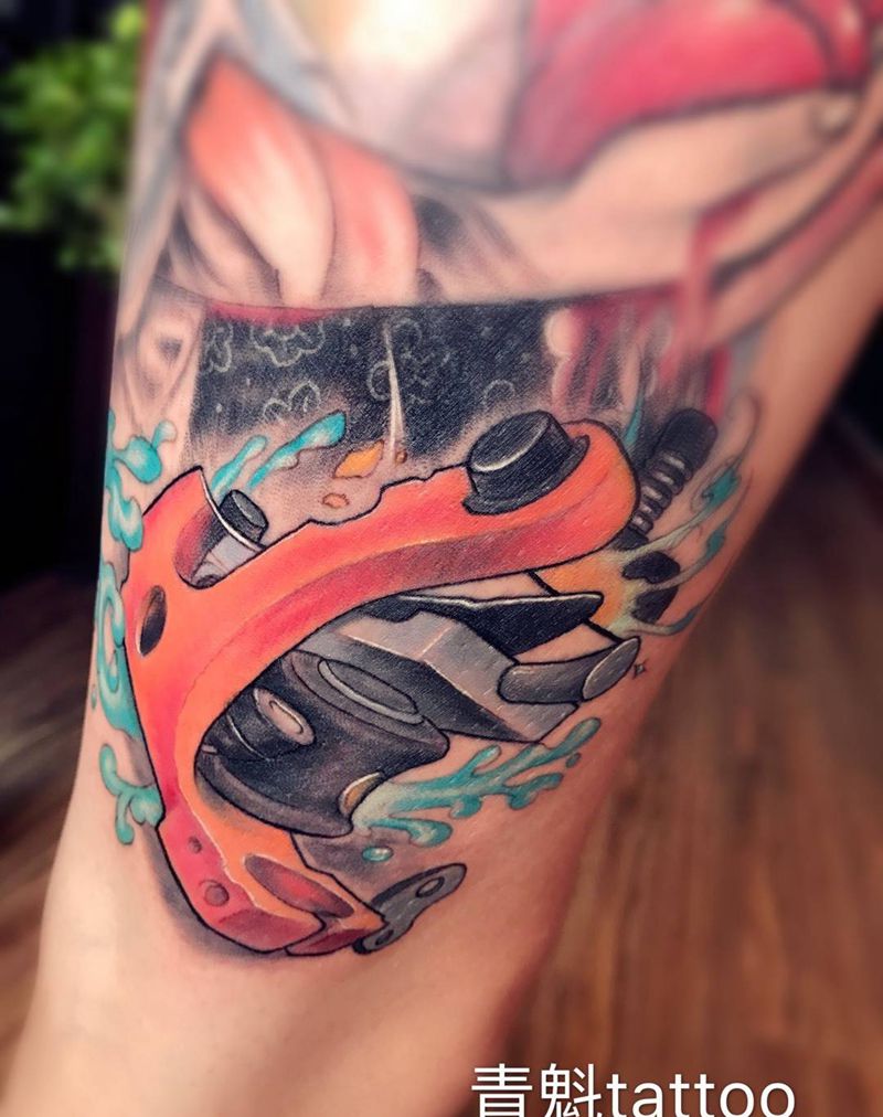 • T网红王老大花腿龙纹身图片_腿部新传统纹身图案