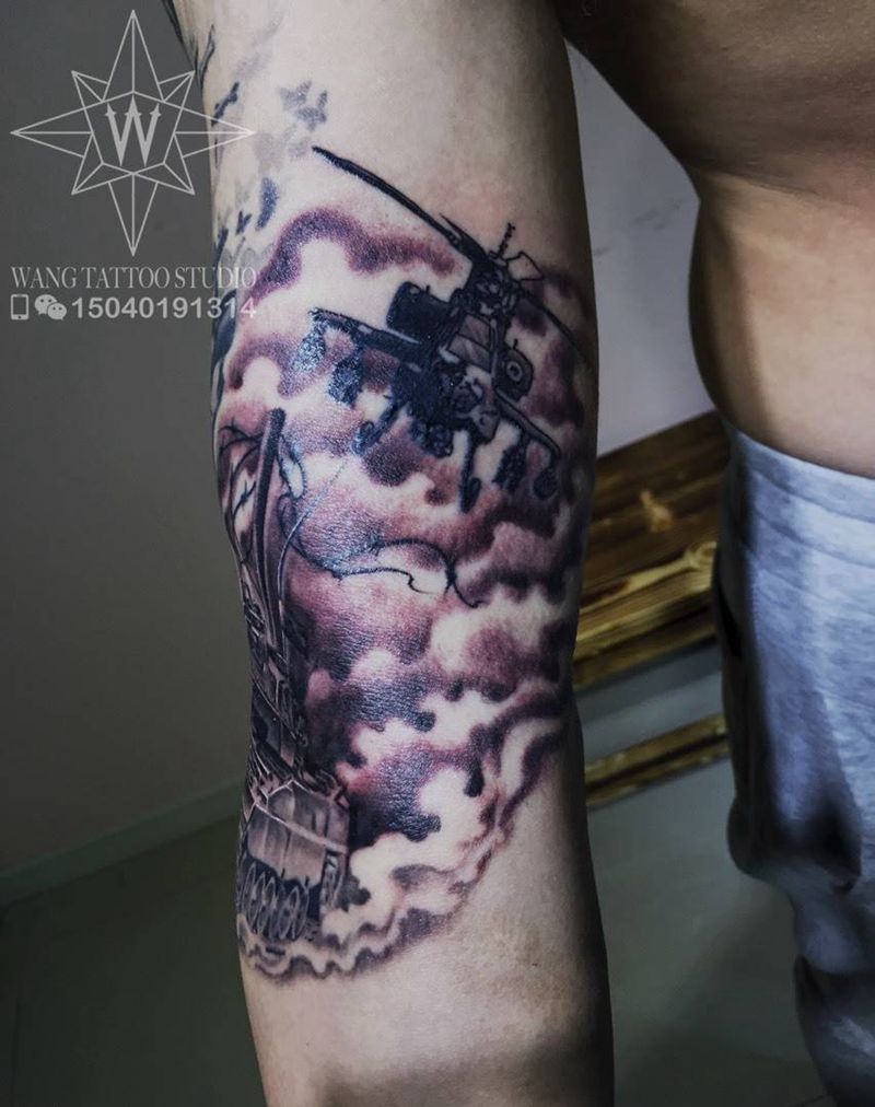 当前位置: 首页 >辽宁省沈阳市纹身店-旺刺青纹身工作室纹身图案>反战题材纹身图片_成品手臂欧美人物机械纹身图案