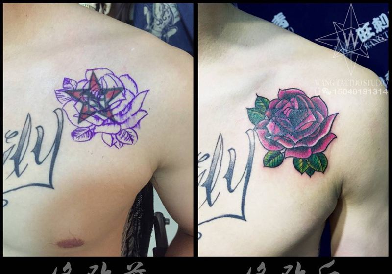 当前位置: 首页 >辽宁省沈阳市纹身店-旺刺青纹身工作室纹身图案>玫瑰花纹身图片_成品胸部欧美植物纹身图案