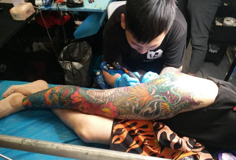 • T网红王老大花腿龙纹身图片_腿部新传统纹身图案