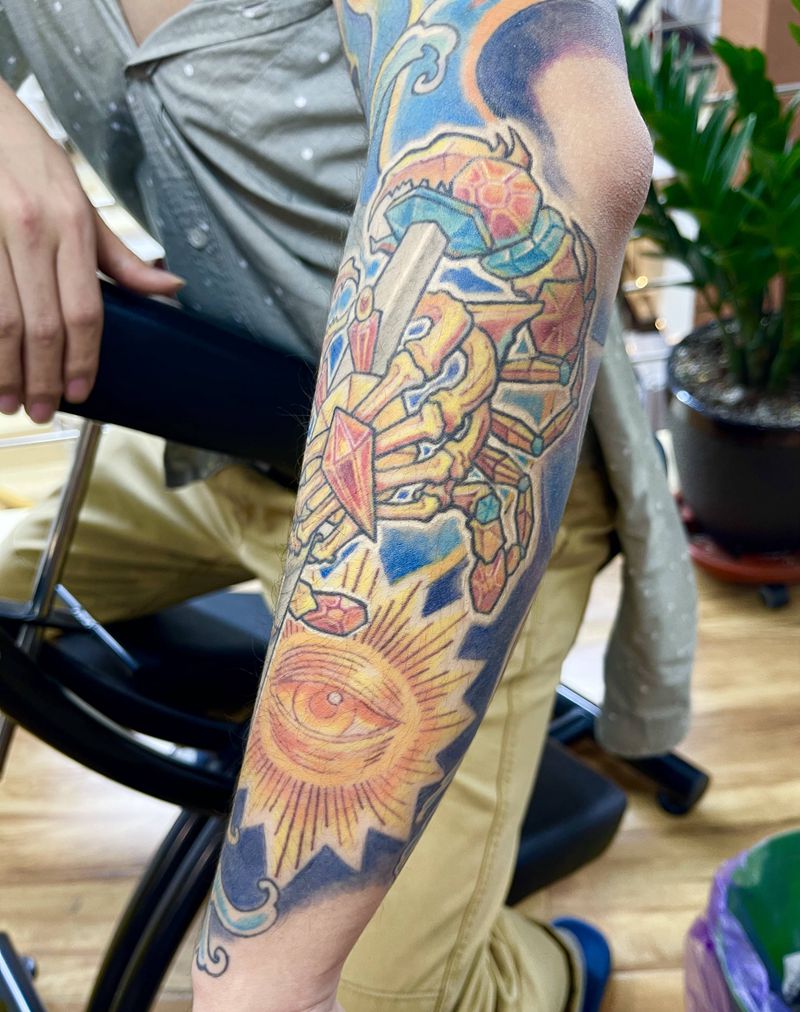 当前位置: 首页 >辽宁省沈阳市纹身店-离岛刺青纹身图案>星座花臂纹身图片_手臂New School星座纹身图案