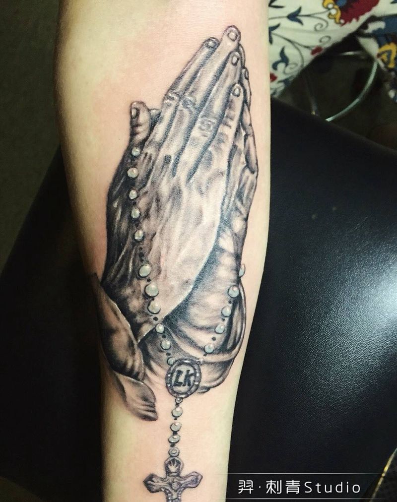 祈福之手纹身图片_成品手臂欧美写实纹身图案