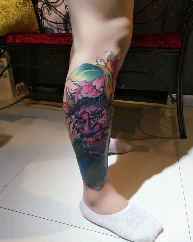 当前位置: 首页 >辽宁省沈阳市纹身店-沈阳513刺青纹身图案>遮盖作品未完纹身图片_传统植物鬼神原创成品纹身图案