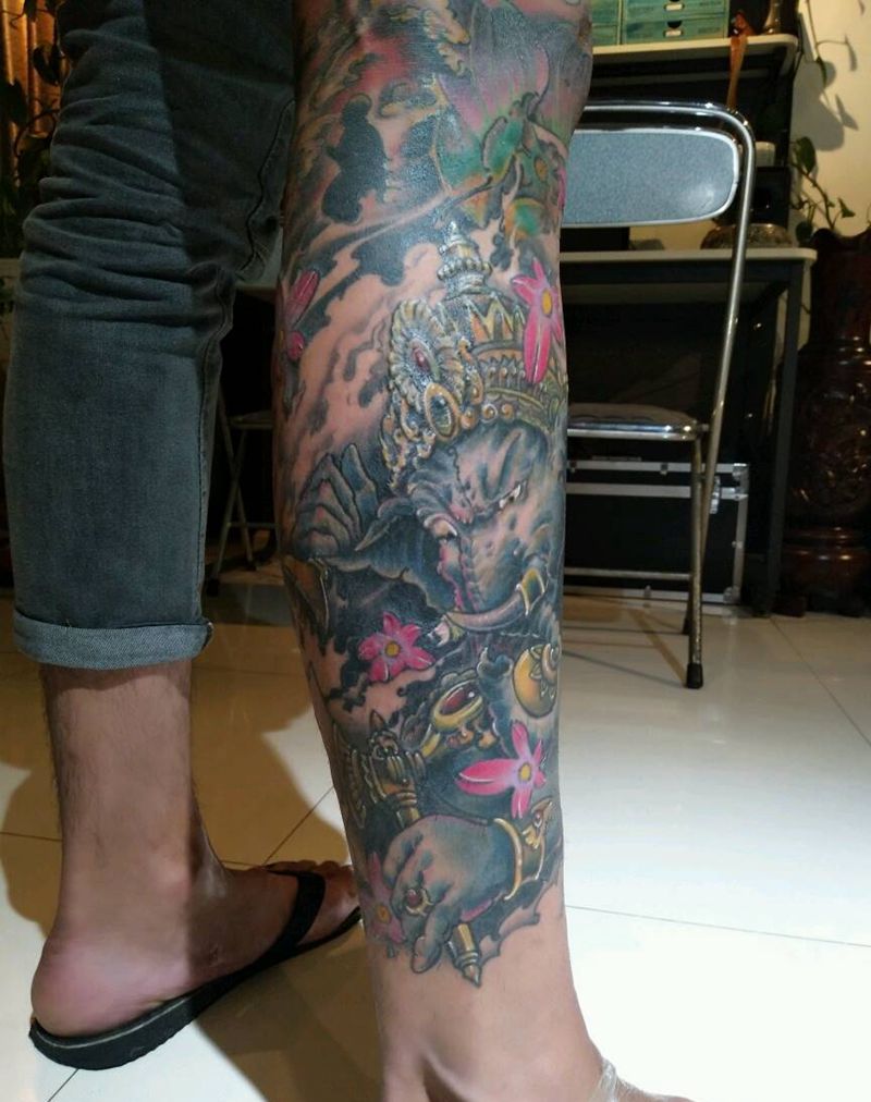 当前位置: 首页 >辽宁省沈阳市纹身店-沈阳513刺青纹身图案>花腿纹身图片_腿部传统动物人物植物静物鬼神宗教成品纹身图案