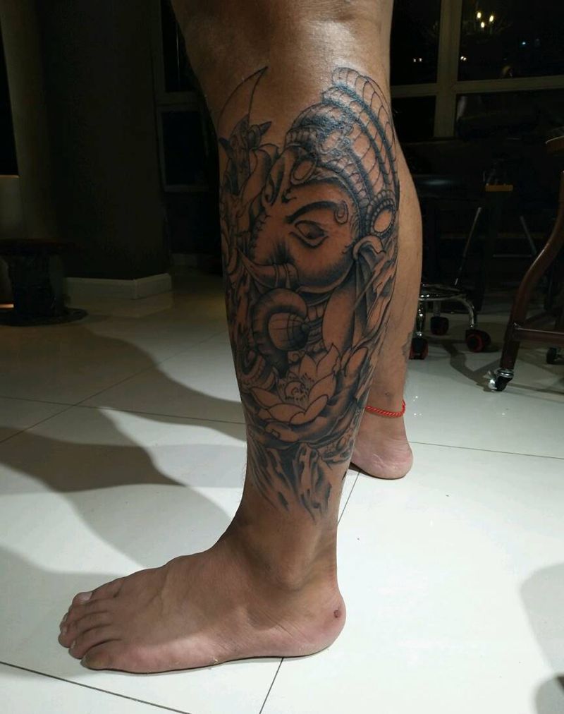 当前位置: 首页 >辽宁省沈阳市纹身店-沈阳513刺青纹身图案>象神纹身图片_腿部传统动物静物鬼神成品纹身图案