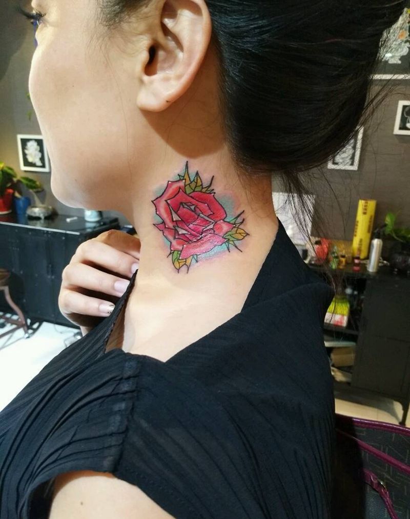 遮盖失败纹身纹身图片_颈部欧美清新植物原创成品纹身图案