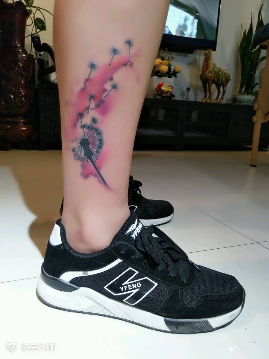 当前位置: 首页 >辽宁省沈阳市纹身店-沈阳513刺青纹身图案>原创蒲公英纹身图片_腿部清新植物静物原创成品纹身图案