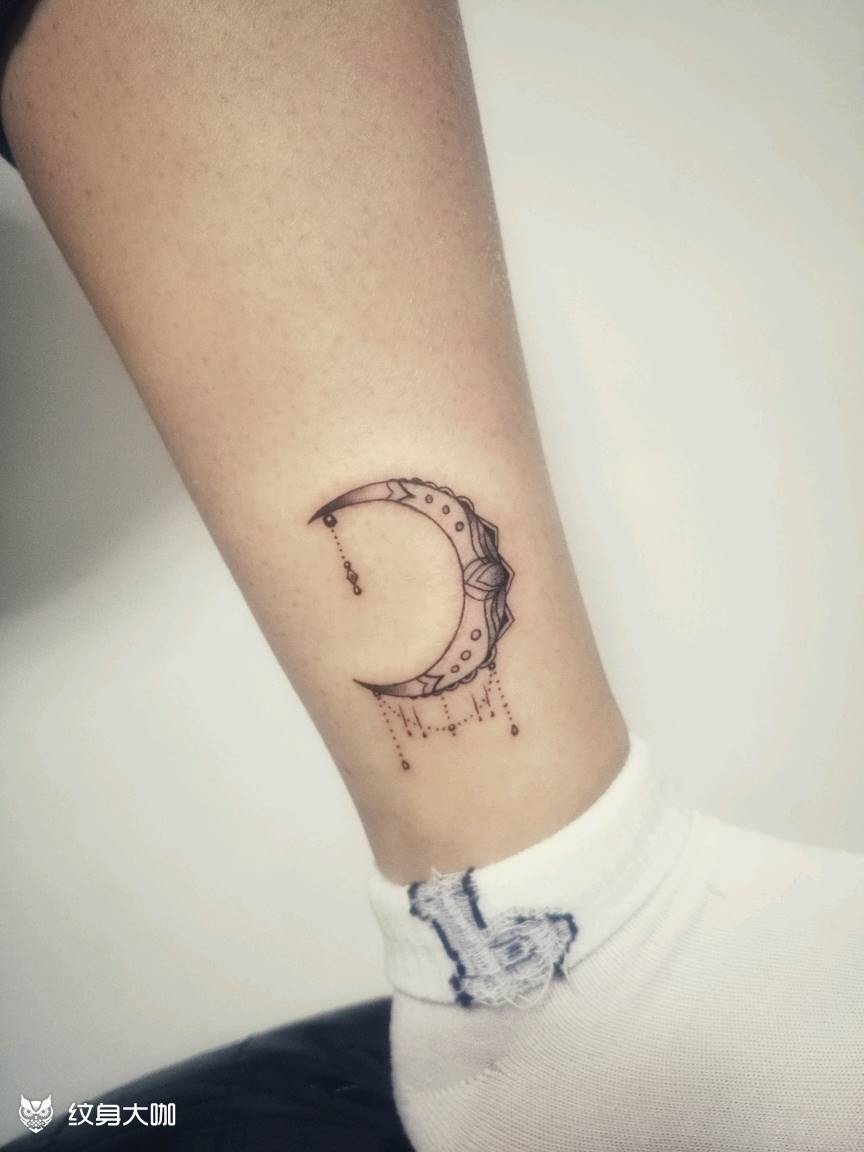 太阳月亮情侣款纹身图片_腿部脚部点刺几何月亮太阳小清新纹身图案