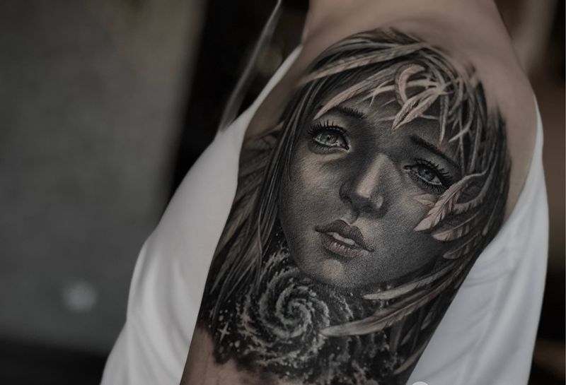 当前位置: 首页 >辽宁省大连市纹身店-大连华龙堂刺青纹身图案>大连华龙堂刺青纹身图片_肩部欧美写实修改覆盖纹身图案