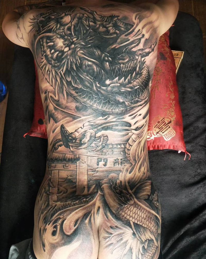 • 黑灰满背纹身图案