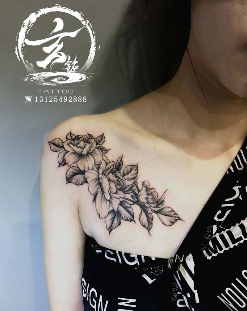• 女性大花胸纹身_43张霸气漂亮的女性大花胸纹身图案作品
