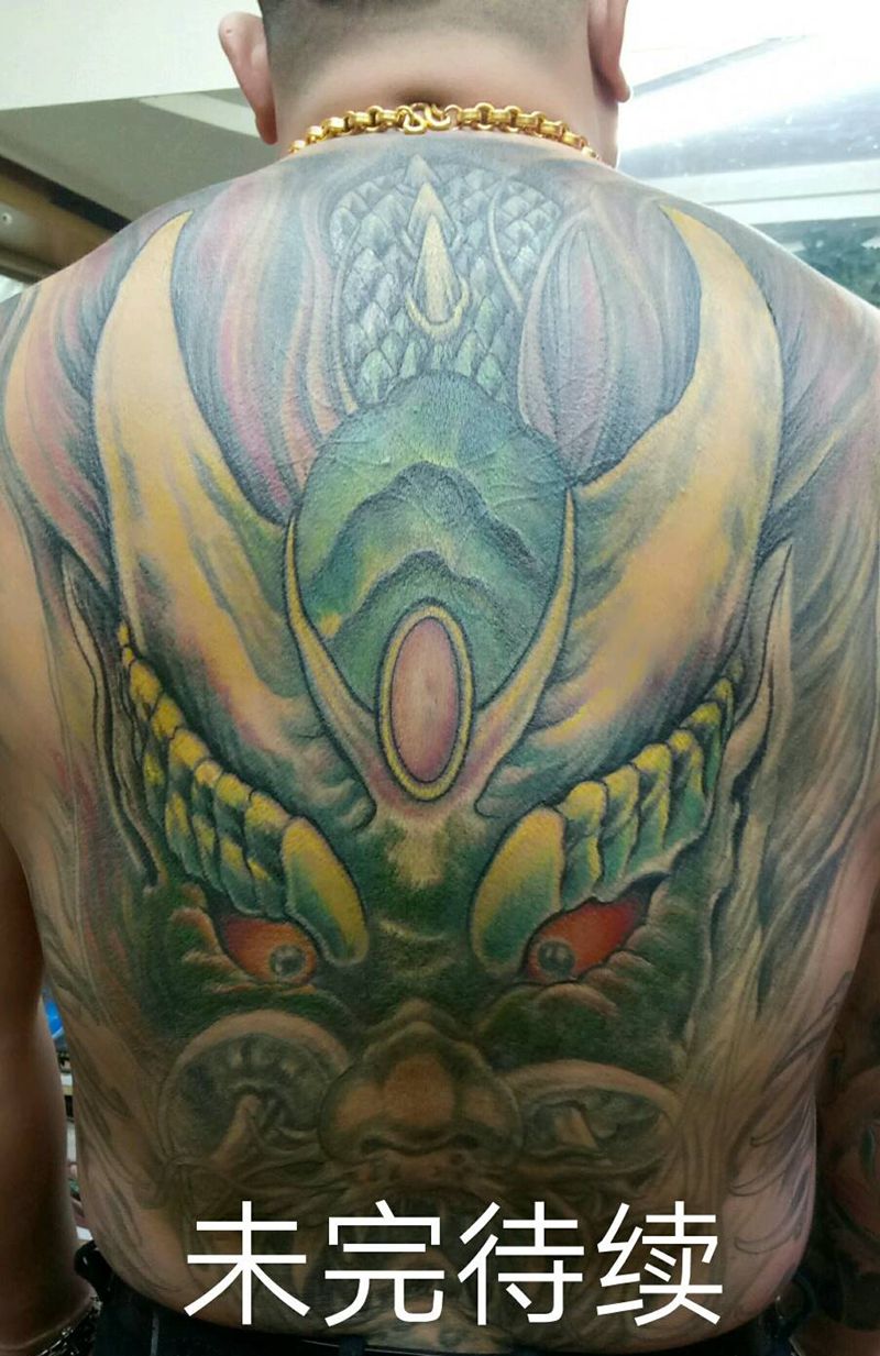 黑灰满背纹身图案
