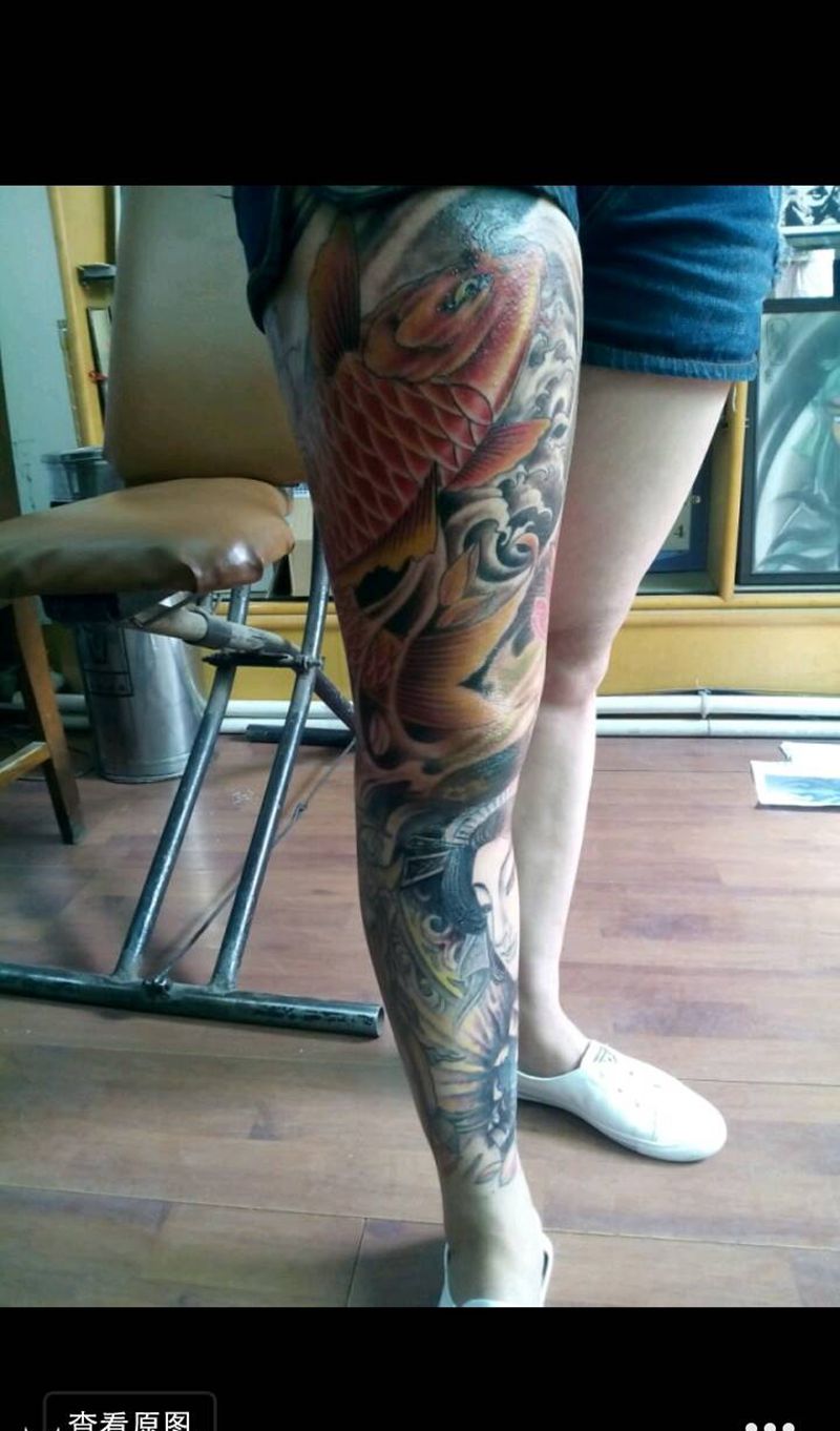 • T网红王老大花腿龙纹身图片_腿部新传统纹身图案