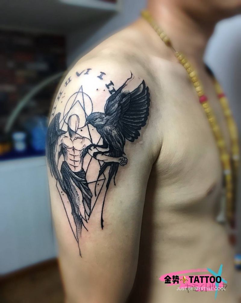 • 纹身吧推荐的披肩图腾半胛纹身图案作品展示