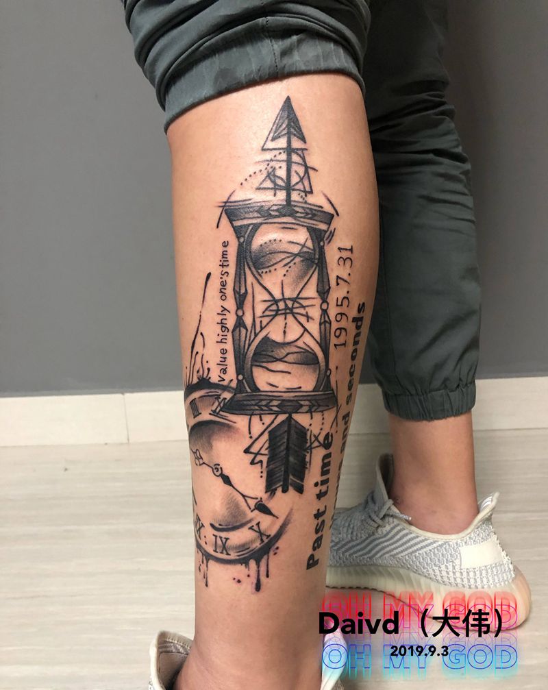 私人设计纹身图片_腿部Old School水墨纹身图案
