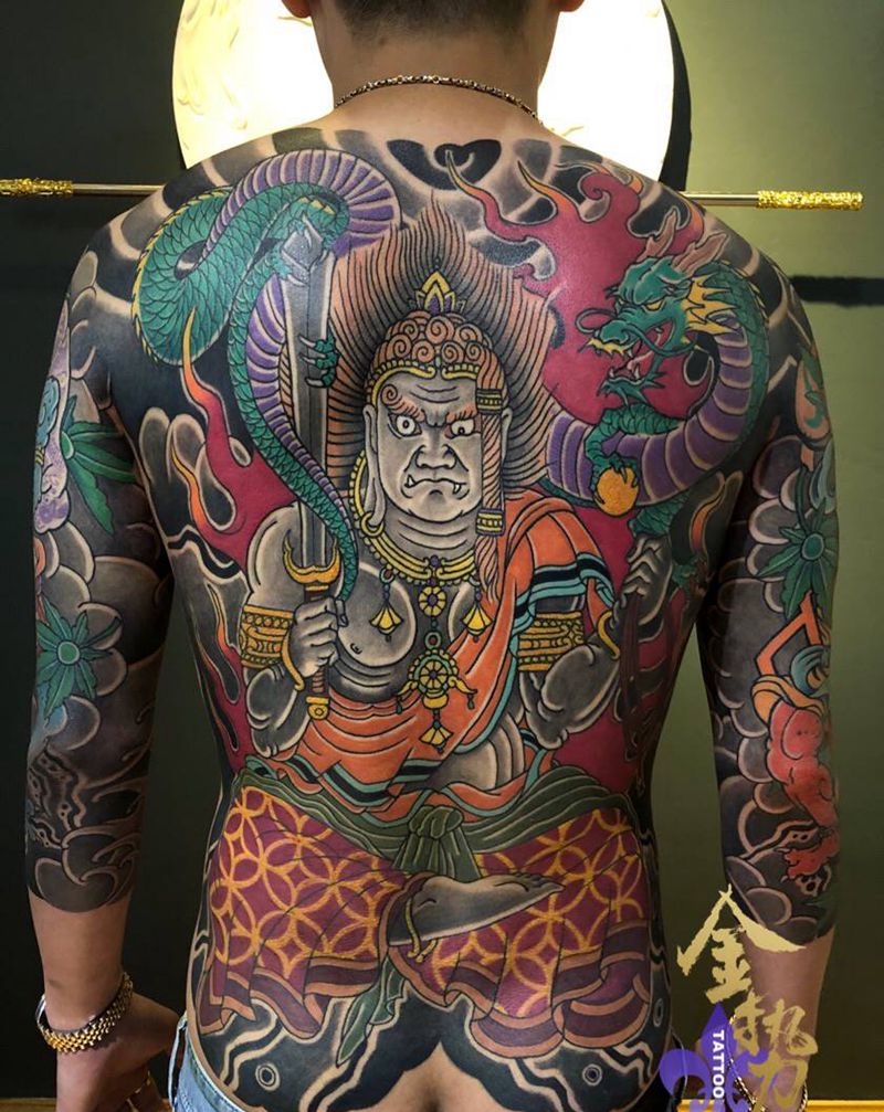 当前位置: 首页 >辽宁省大连市纹身店-金势刺青TATTOO纹身图案>不动明王·风神·雷神纹身图片_背部手臂老传统纹身图案