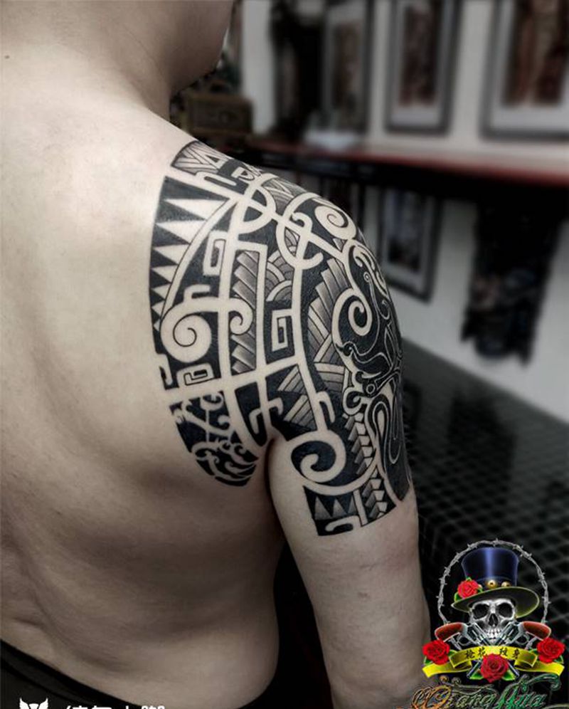 • 纹身吧推荐的披肩图腾半胛纹身图案作品展示