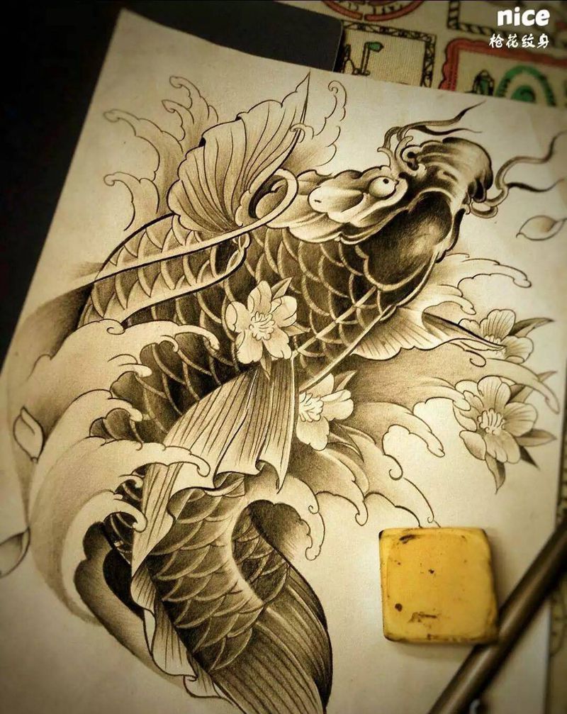 锦鲤纹身图片_成品手稿肩部背部手臂腿部传统动物纹身图案