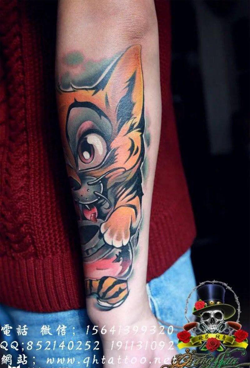 当前位置: 首页 >辽宁省抚顺市纹身店-枪花纹身机构纹身图案>小老虎纹身图片_成品手臂欧美清新动物纹身图案