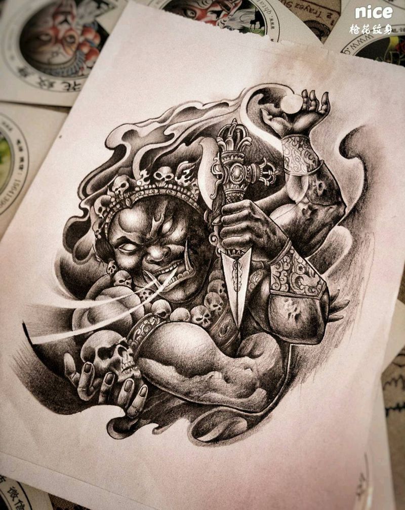 大黑天纹身图片_传统人物鬼神宗教成品纹身图案
