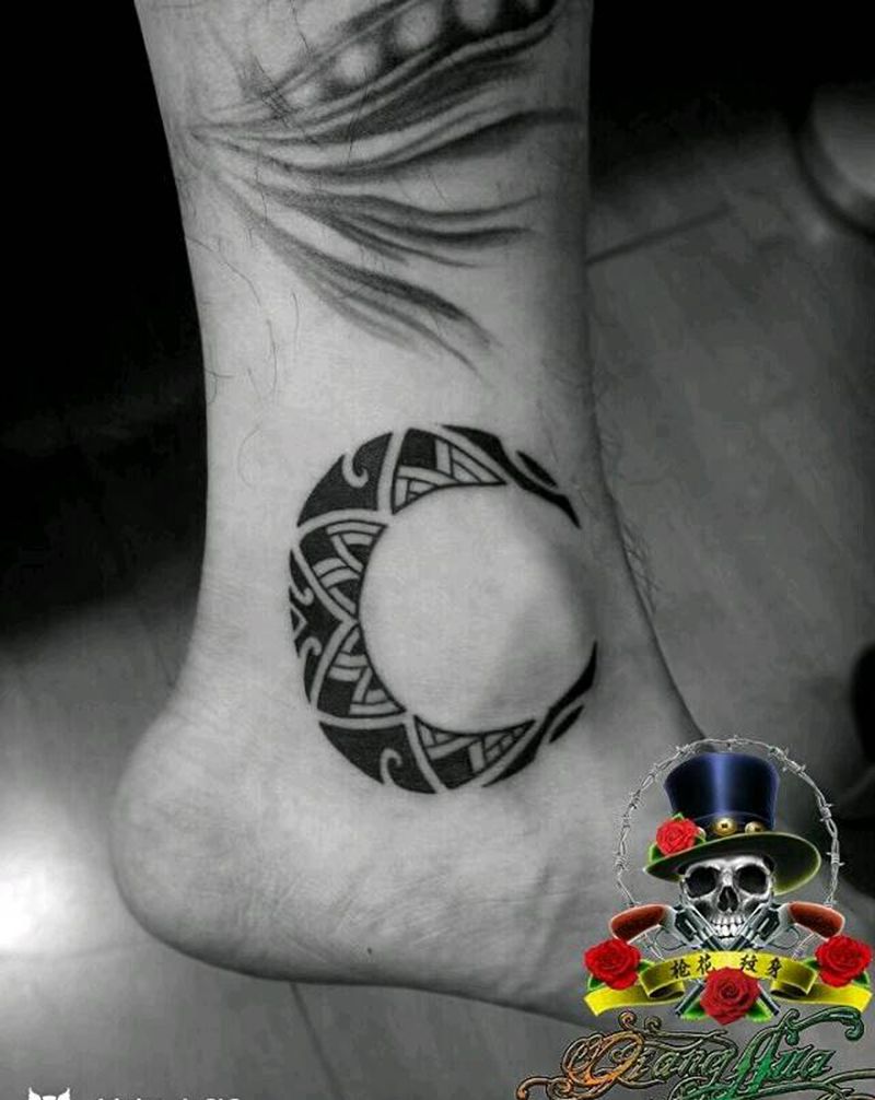 月亮纹身图片_脚部清新图腾成品纹身图案