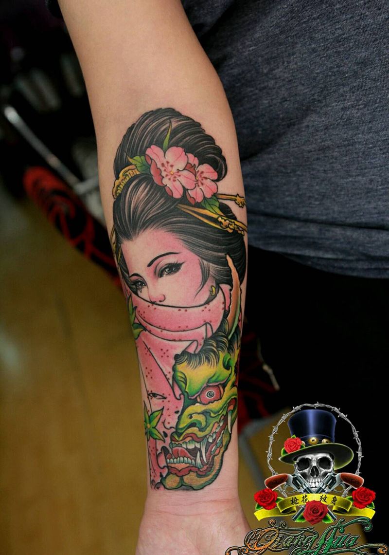 当前位置: 首页 >辽宁省抚顺市纹身店-枪花纹身机构纹身图案>艺妓纹身图片_手臂传统人物鬼神成品纹身图案