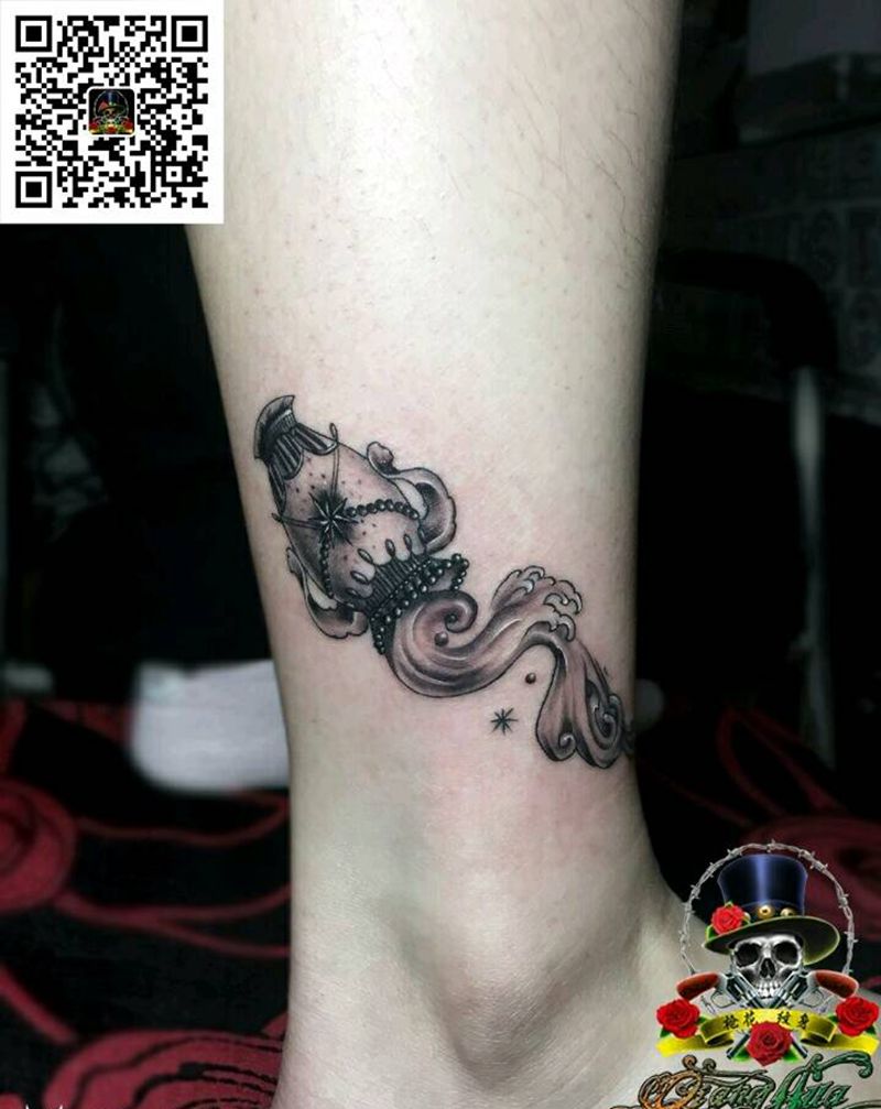 水瓶座纹身图片_腿部清新静物成品纹身图案