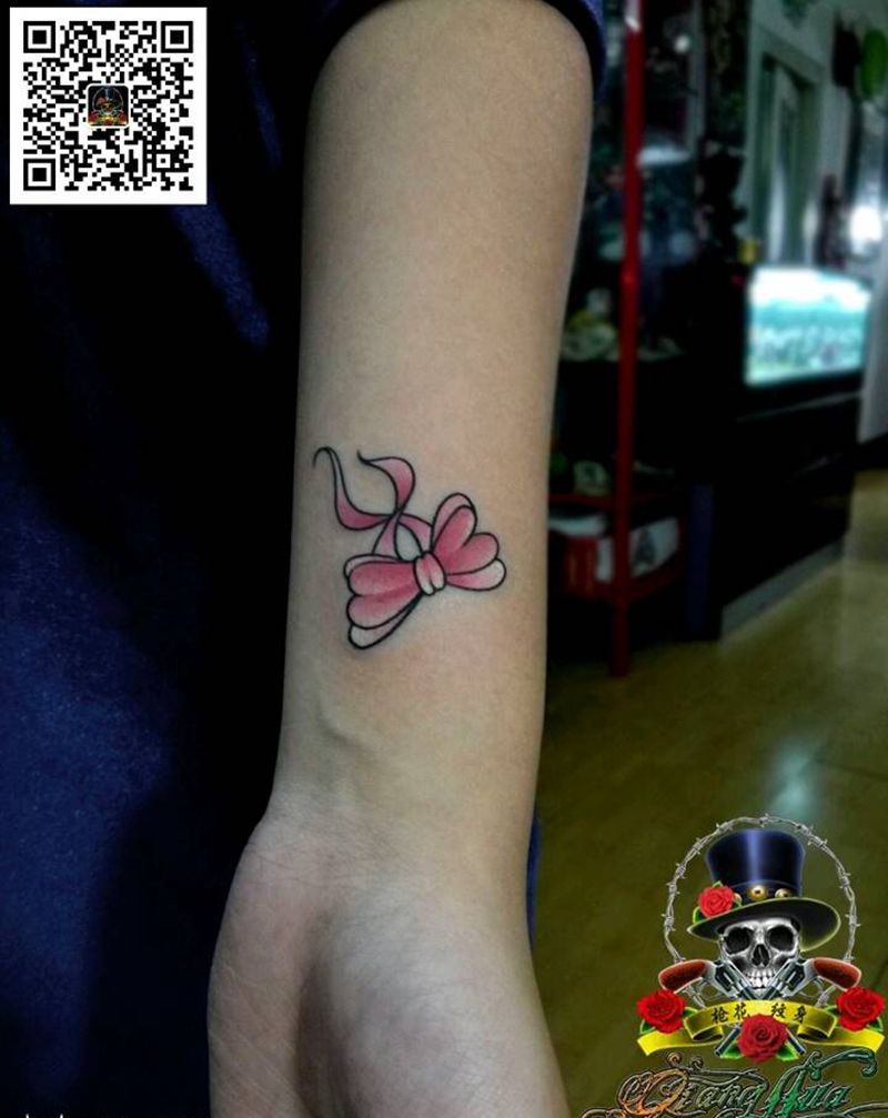 蝴蝶结纹身图片_手臂清新静物成品纹身图案