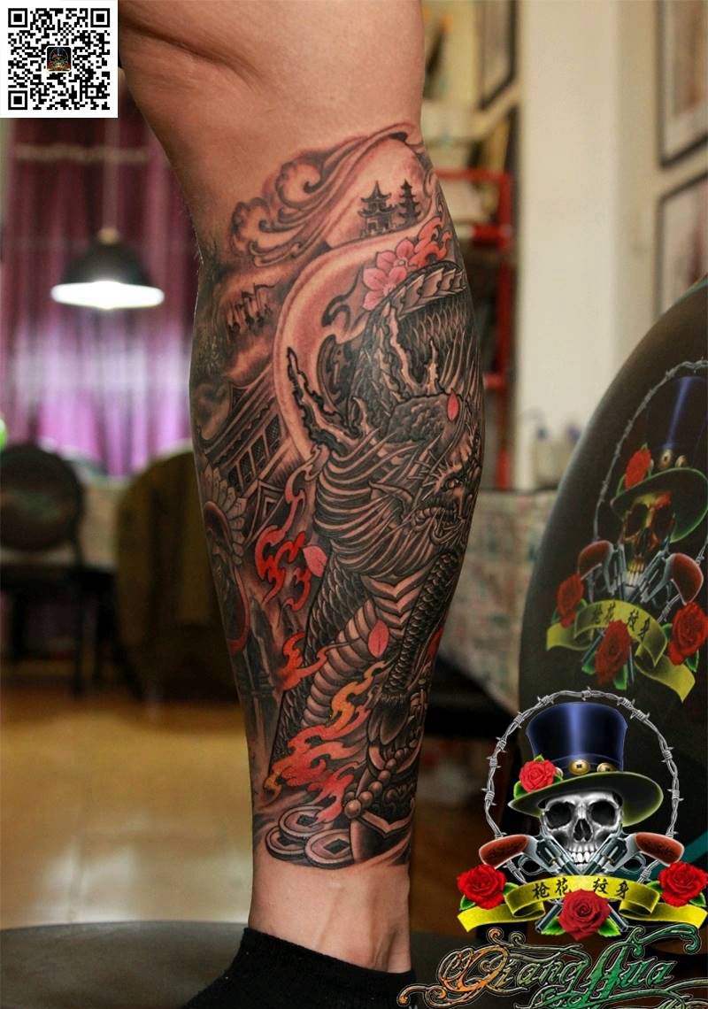 • T网红王老大花腿龙纹身图片_腿部新传统纹身图案