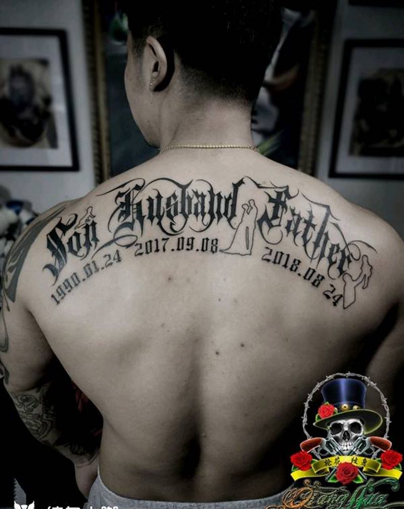 当前位置: 首页 >辽宁省抚顺市纹身店-枪花纹身机构纹身图案>花体字纹身图片_背部花体字纹身图案