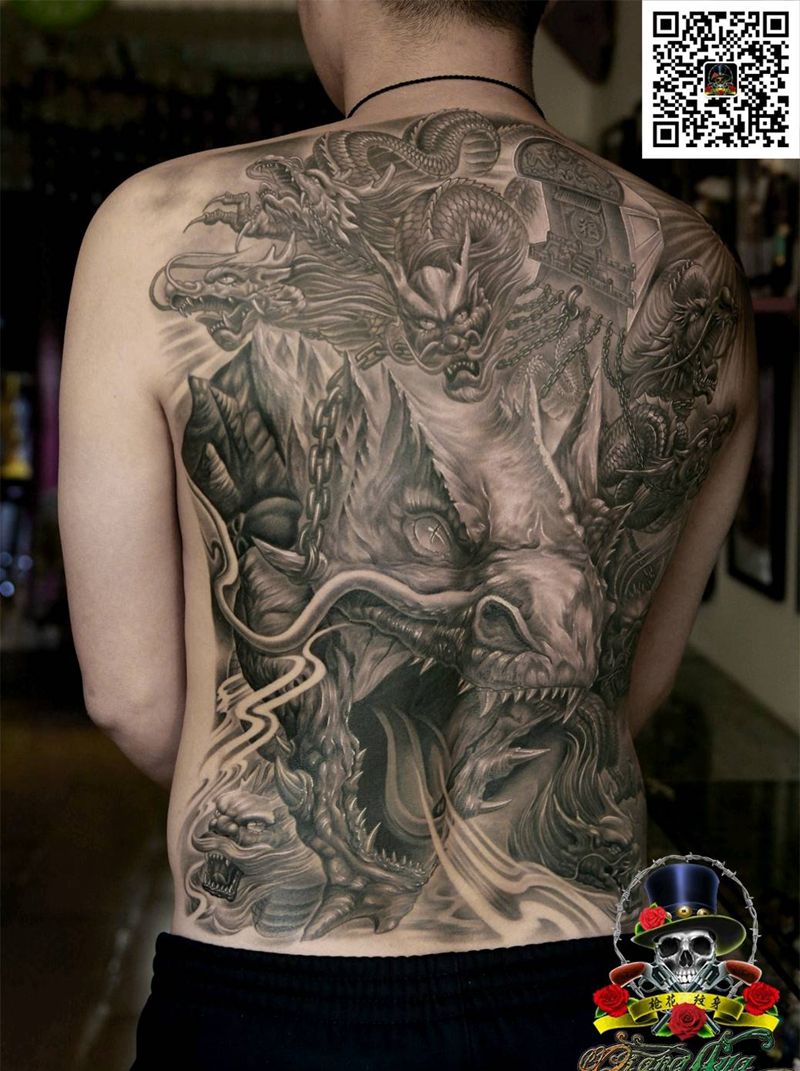 • T云龙九郎纹身图片_背部老传统云龙九郎纹身图案