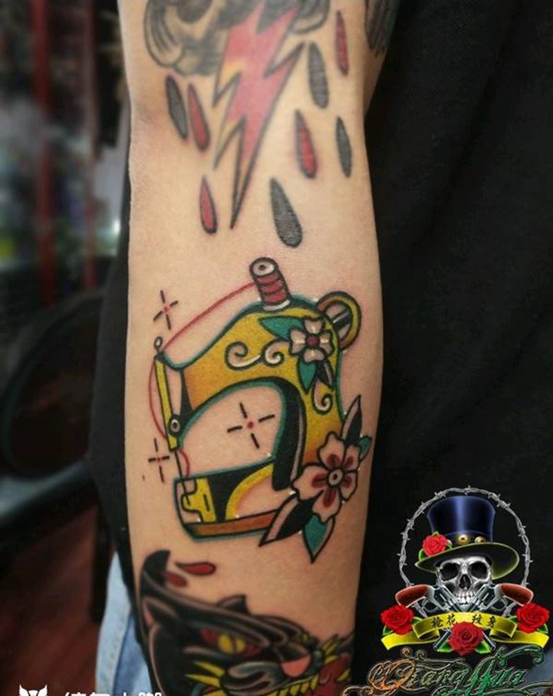 当前位置: 首页 >辽宁省抚顺市纹身店-枪花纹身机构纹身图案>缝纫机纹身图片_手臂Old School纹身图案