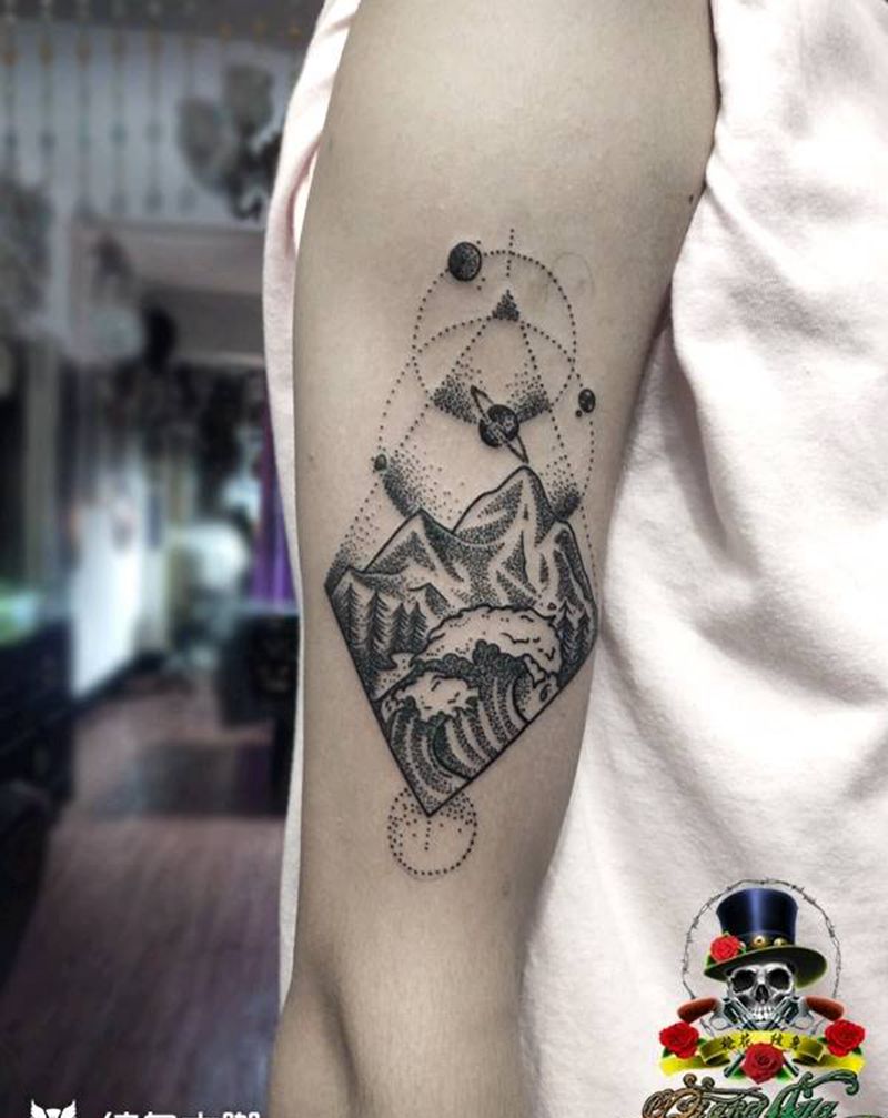 山纹身图片_手臂点刺纹身图案