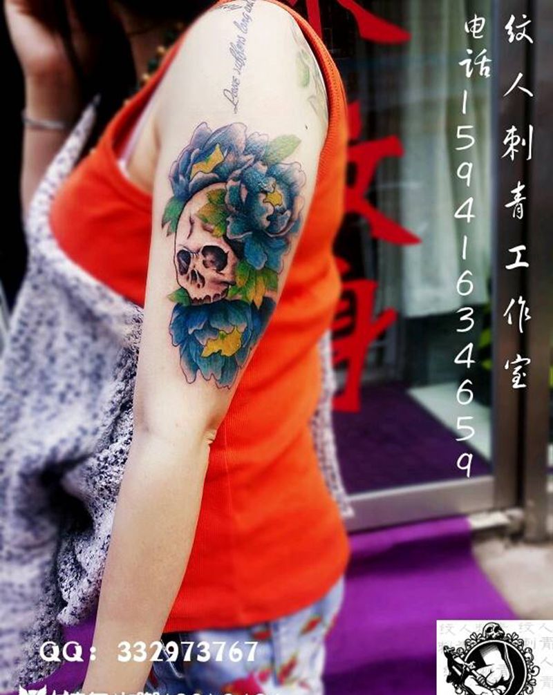 当前位置: 首页 >辽宁省锦州市纹身店-纹人刺青纹身图案>骷髅牡丹纹身图片