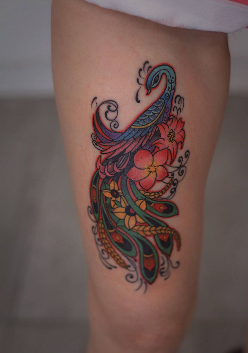 当前位置: 首页 >辽宁省锦州市纹身店-纹人刺青纹身图案>孔雀纹身图片_腿部纹身图案
