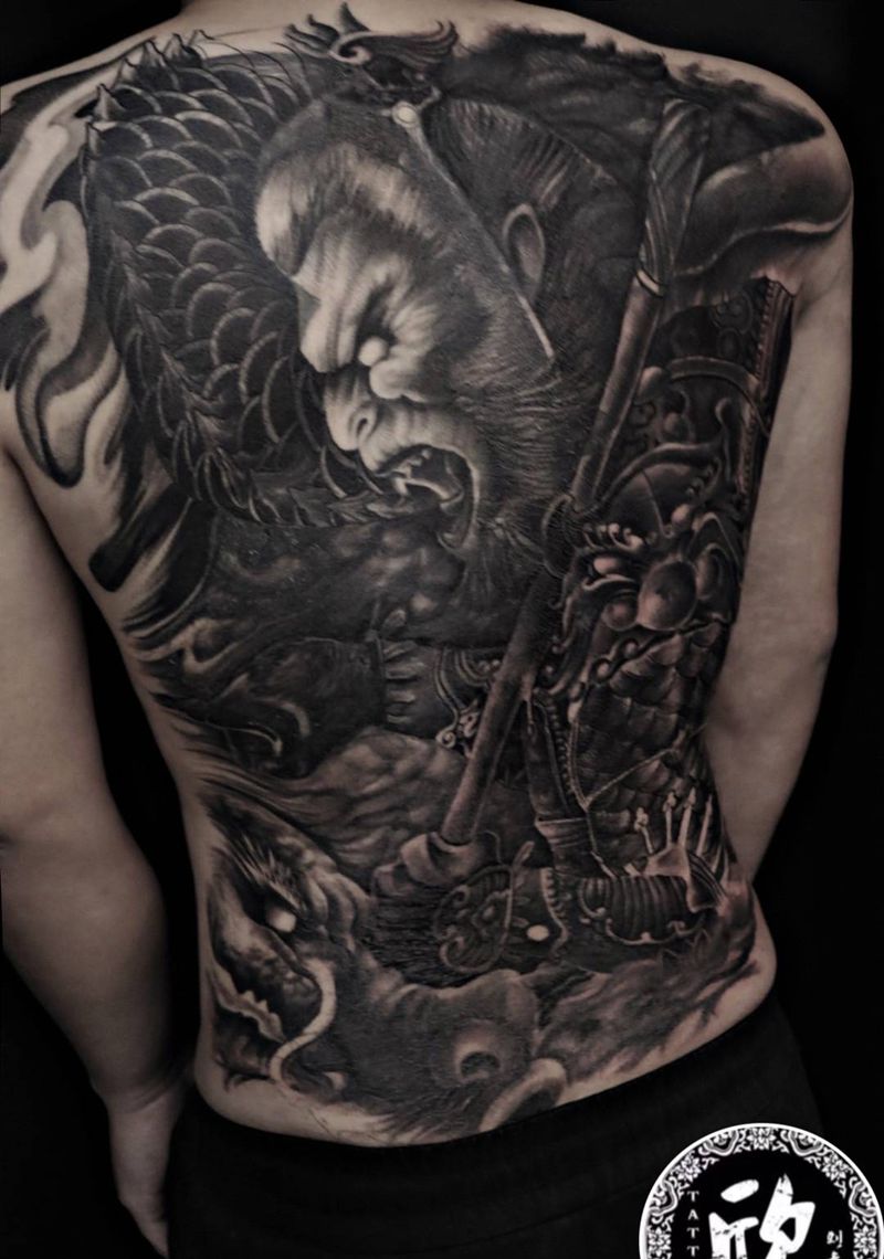 当前位置: 首页 >辽宁省丹东市纹身店-欣刺青纹身图案>孙悟空暴力遮盖纹身图片_背部新传统齐天大圣遮盖纹身图案