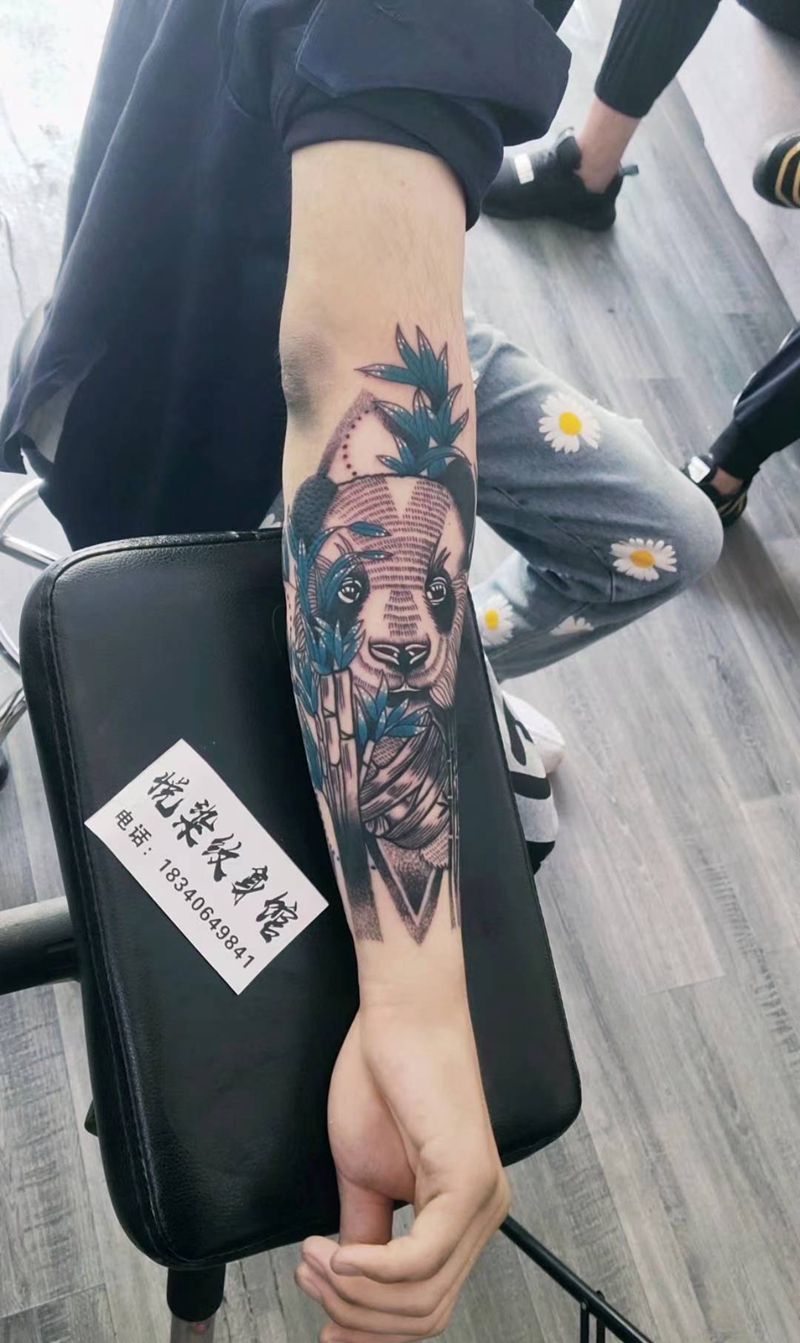 当前位置: 首页 >辽宁省营口市纹身店-悦染纹身馆纹身图案>熊猫纹身图片_手臂几何点刺熊猫纹身图案