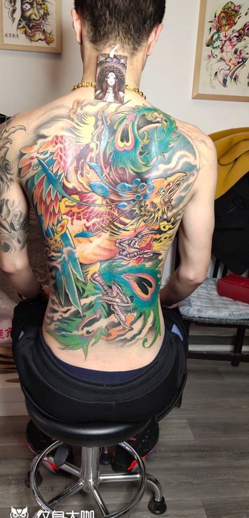 黑灰满背纹身图案