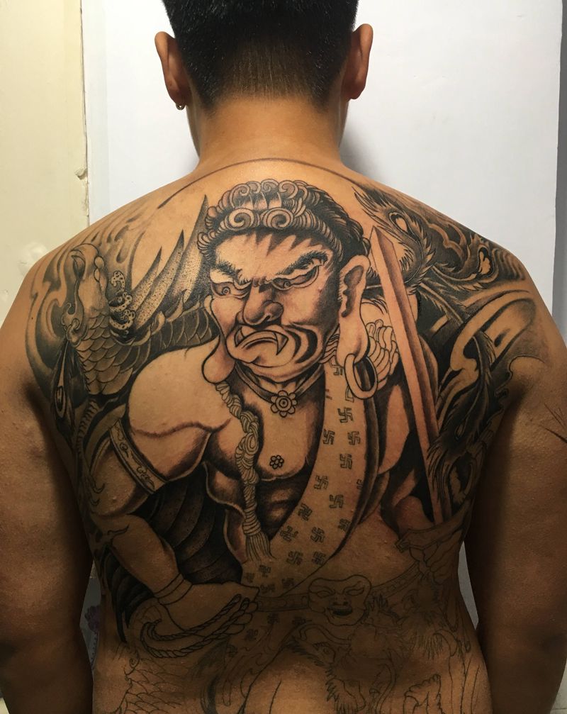 当前位置: 首页 >辽宁省盘锦市纹身店-盘锦艺绣堂刺青纹身图案>不动冥王未完成纹身图片_背部纹身图案