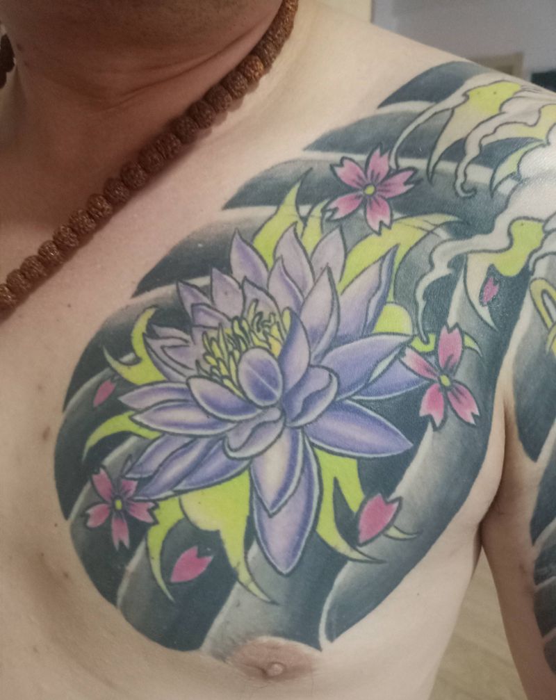 • 女性大花胸纹身_43张霸气漂亮的女性大花胸纹身图案作品