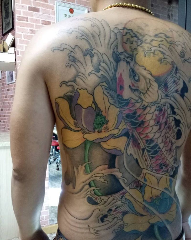 锦鲤纹身图片_背部传统动物成品纹身图案